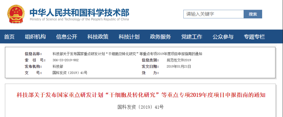 2019年1月21日,我國科技部官網正式發(fā)布了“干細胞及轉化研究”重點專項2019年度項目申報指南,指南中明確:在之前已支持98個項目的基礎上,2019年國家再撥款4億元,支持12個干細胞研究方向。其中干細胞資源庫、干細胞治療性腺衰老也寫入申報指南。指南中明確…